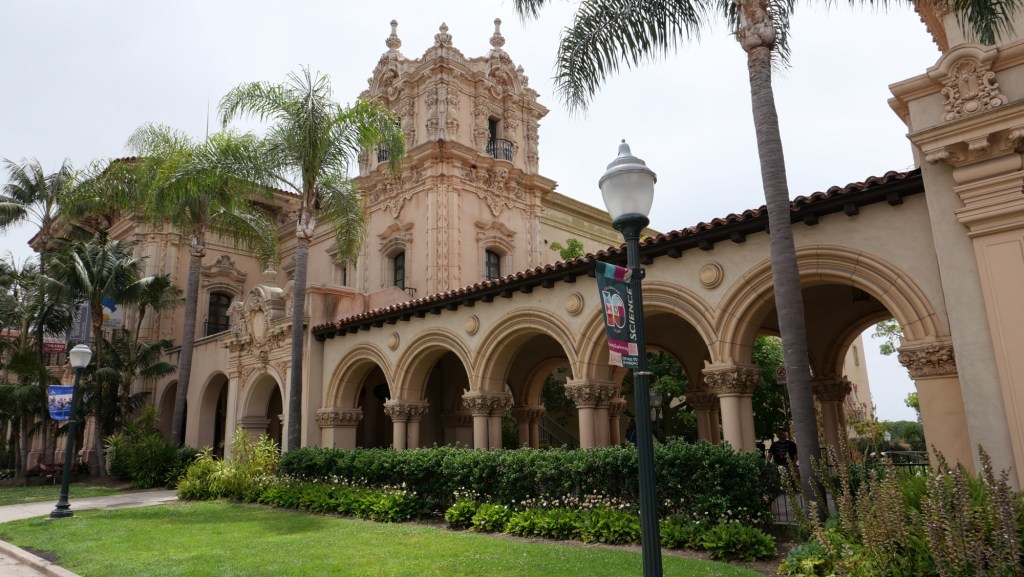 Heute Sightseeing in und um San Diego, zunächst Balboa Park: das alte spanische Zentrum. Hier gibt es zahlreiche Museen (Eisenbahn, Luftfahrt, ComicCon, Kunst), eine Openair Orgel, Wasserspiele etc. und viel Flora.
