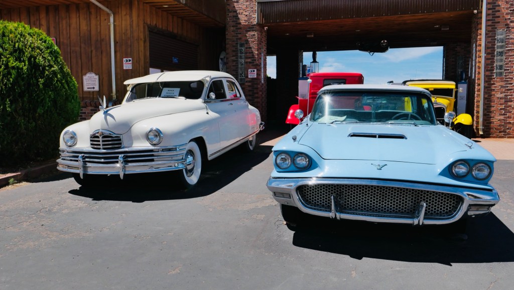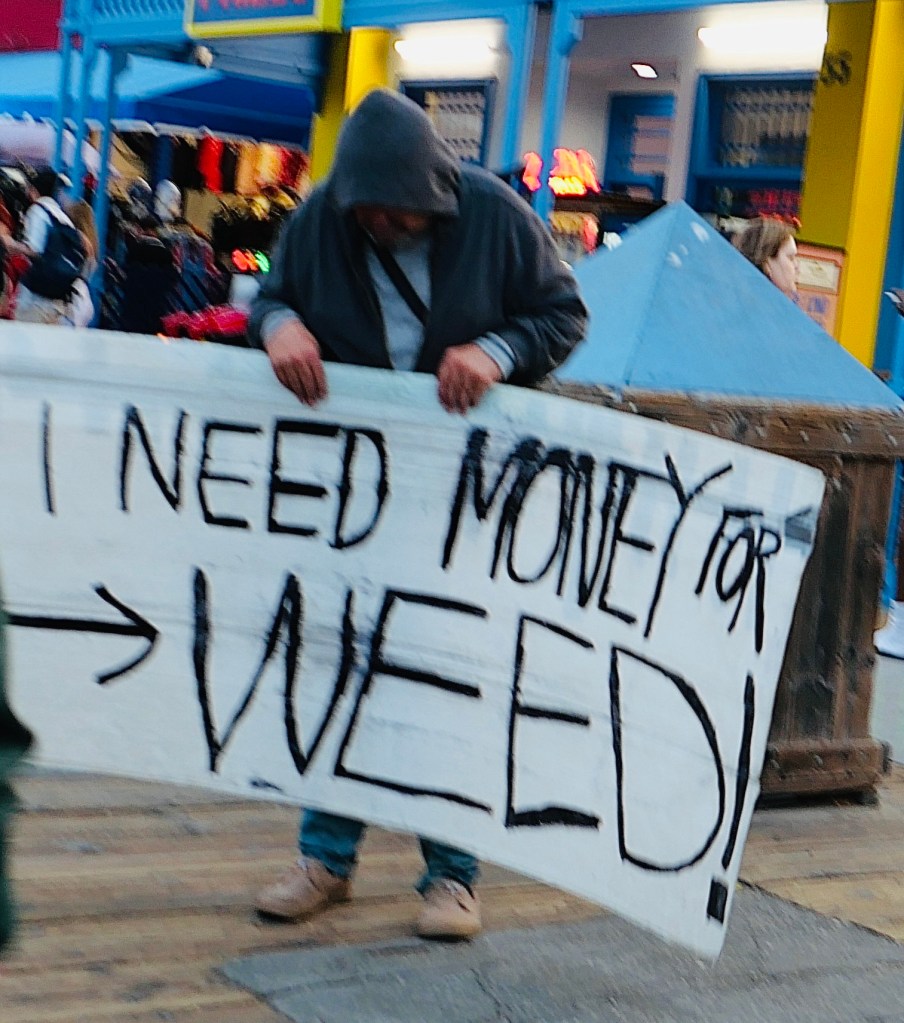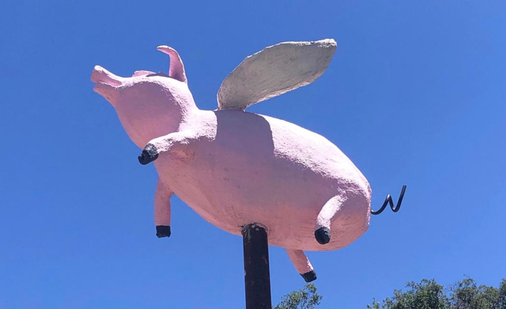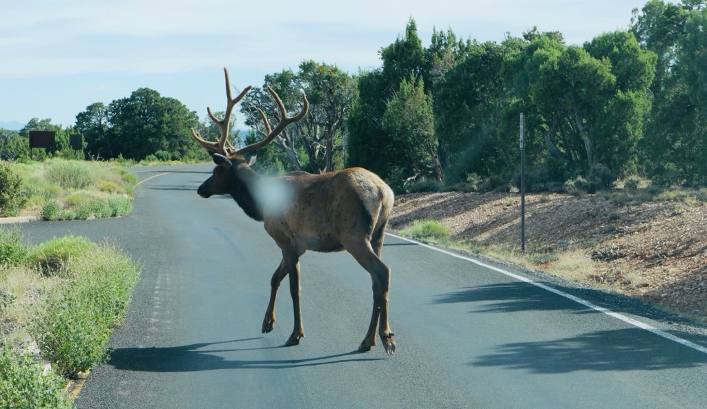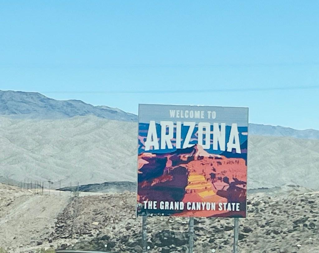 Wir sind in den vergangenen 4 Wochen 5936 Meilen/ 9553 Kilometer gefahren und es gab weder eine brenzlige Situation im Straßenverkehr noch ein Problem mit dem Mietwagen; Oliver konnte aufgrund seines fortgeschrittenen Alters heute auch ganz entspannt an diesem Werbeschild an der Interstate vorbeifahren.