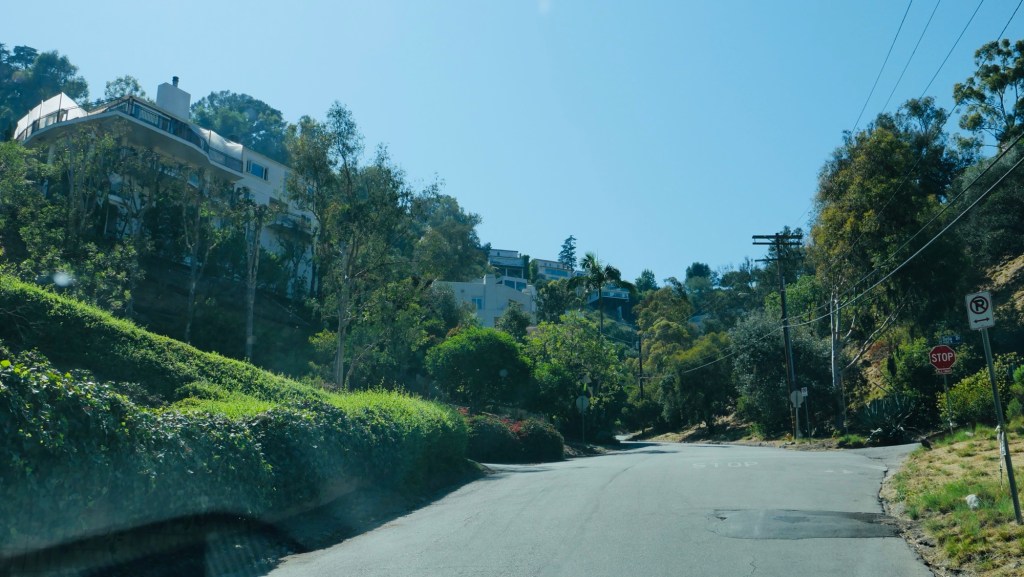 Über den Mulholland Drive, einer Höhenstraße in den Hollywood Hills. Hier wohnen viele Berühmtheiten, zB Jack Nicholson…