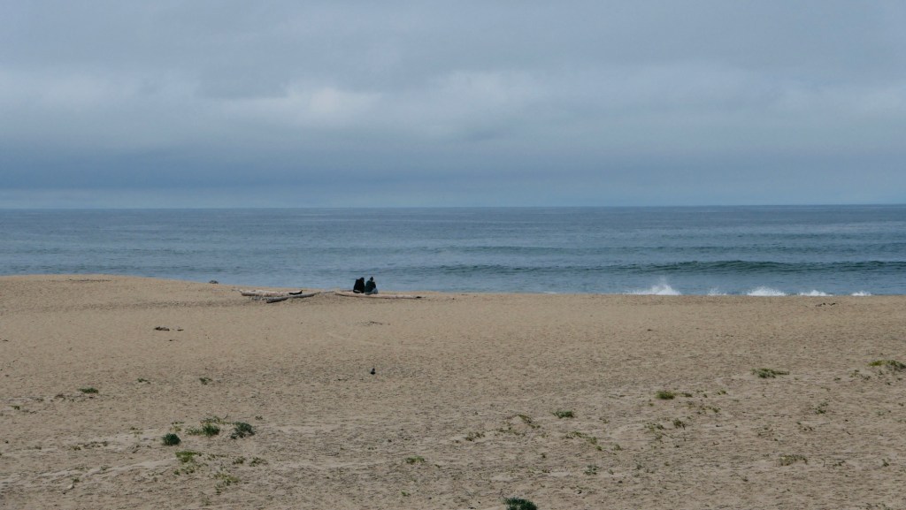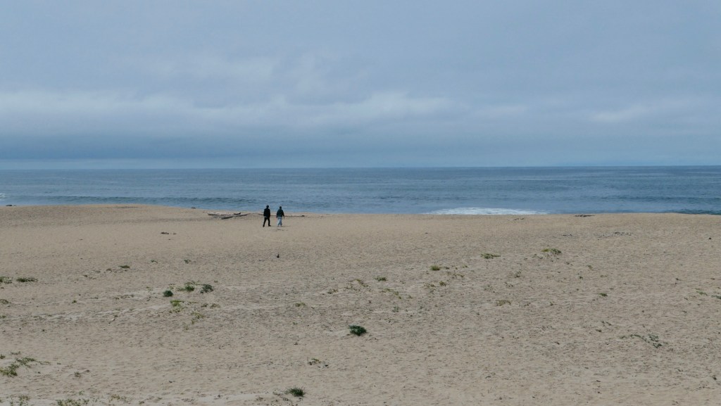 Frau und Kind zum ersten Mal mit den Füßen im Pazifik…